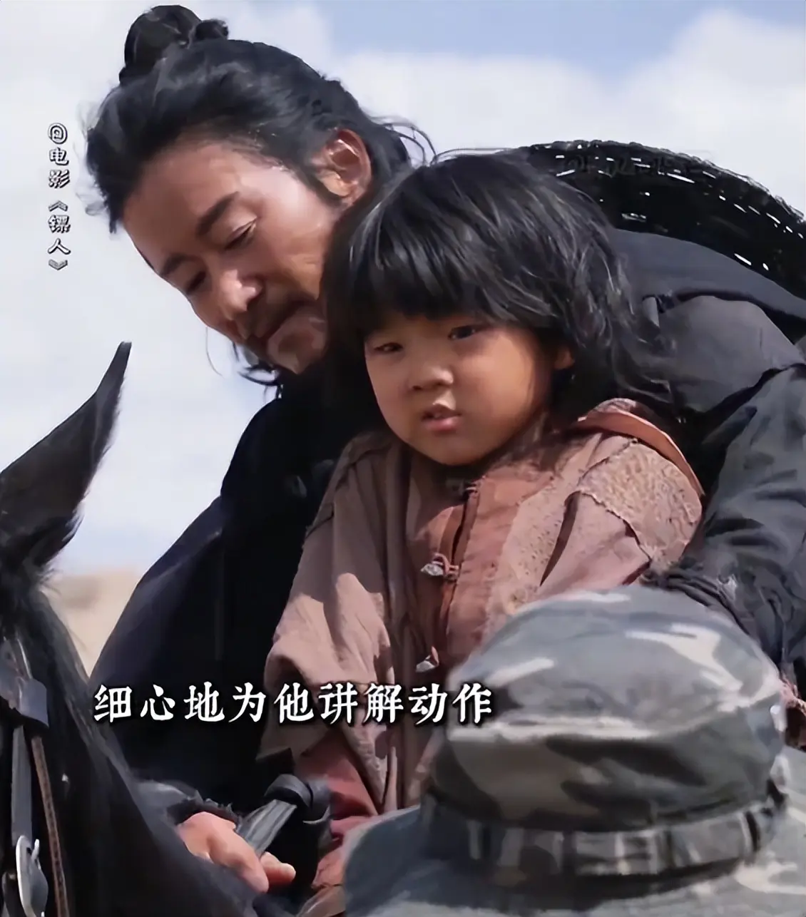 值得一提的是,吴京在影片中,不少骑马戏还是与饰演小七的孩子一起的。