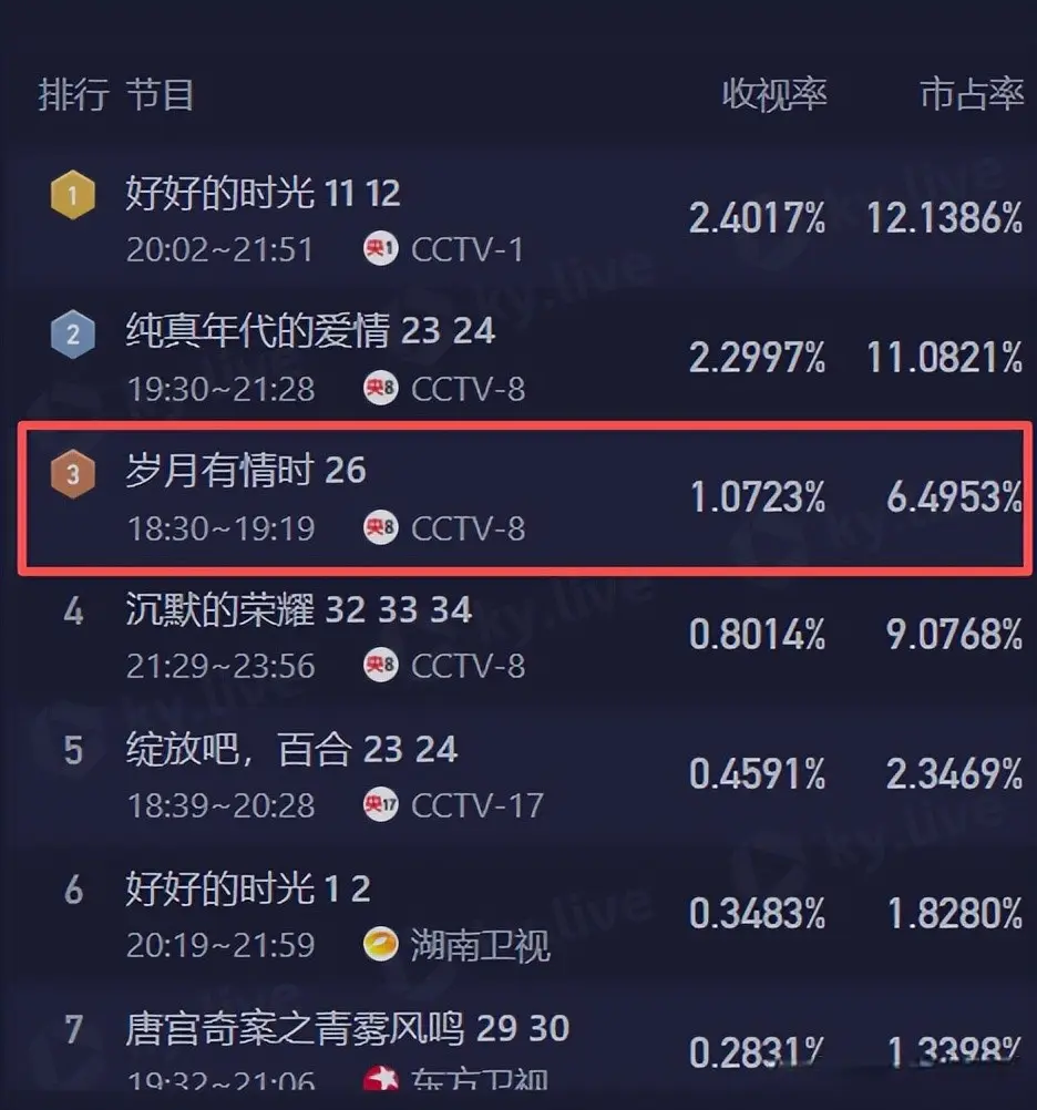 明明都是央视的年代剧,竟然只有《岁月有情时》跌破2%,甚至还有跌破1的风险。